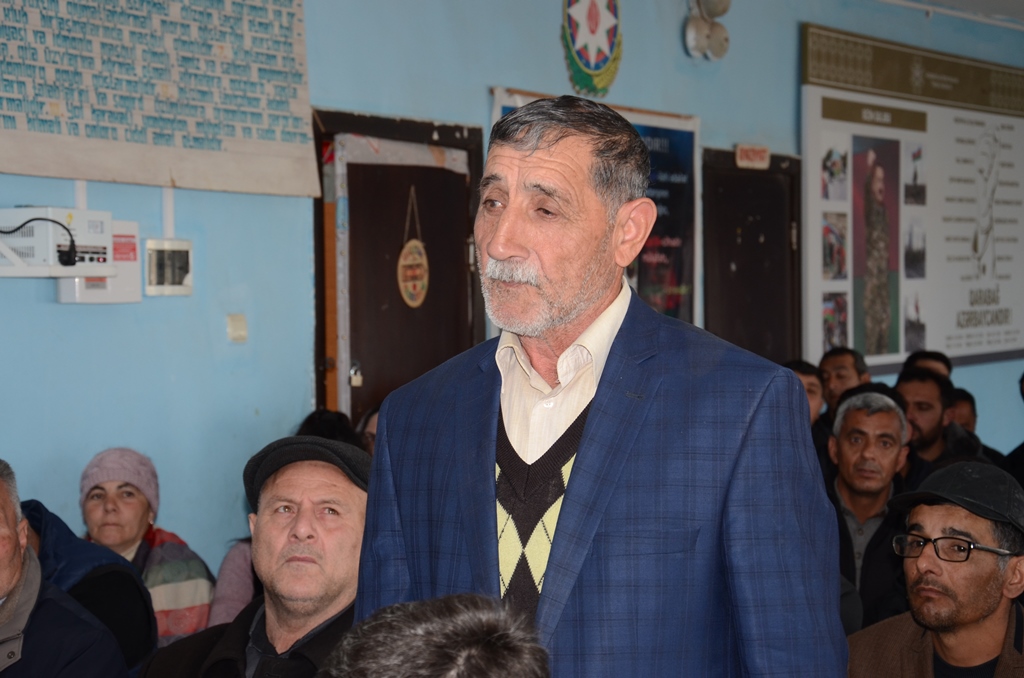 Saatlı Rayon İcra Hakimiyyətinin başçısı Elmir Bağırov çıxış edərək kənd sakinlərini salamlamış, ölkəmizdə sosial-iqtisadi sahədə qazanılan uğurlardan, eləcə də Saatlı rayonunda aparılan tikinti-quruculuq, abadlıq işlərindən, əhalinin sosial problemlərinin həlli istiqamətində həyata keçirilən tədbirlərdən ətraflı məlumat vermişdir.